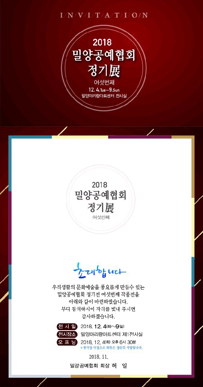 허일 경남최고장인께서 “밀양공예협회 정기전”을 초대합니다.