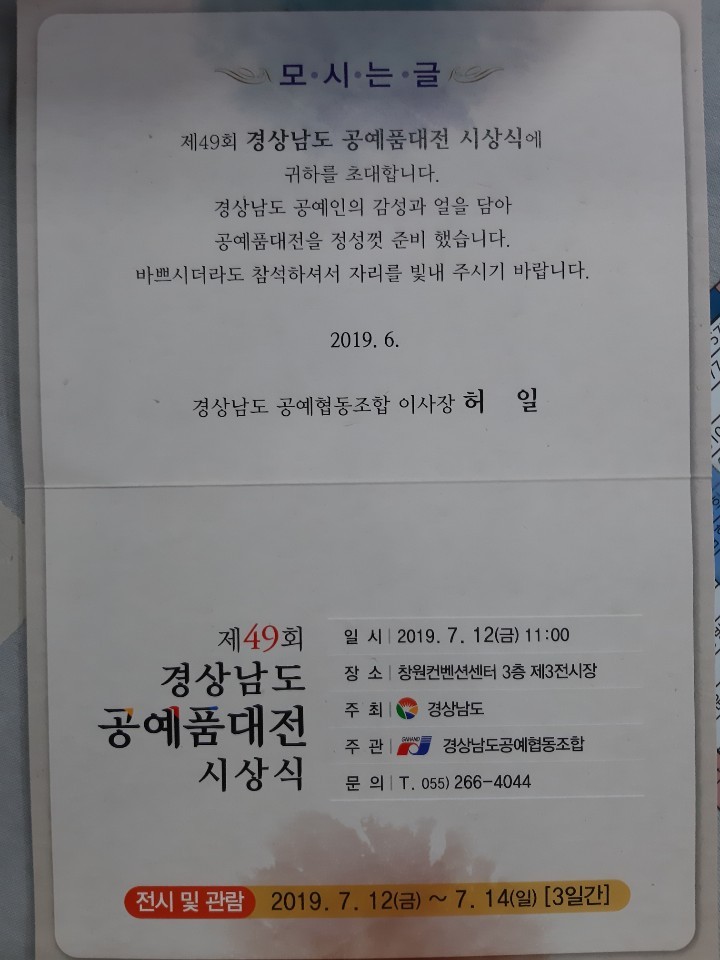 허일최고장인_ 제49회 경상남도 공예품 대전 시상식에 초대합니다.