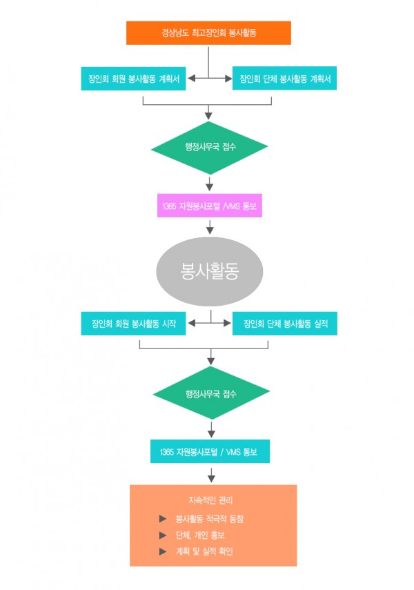 최고장인회원 여러분께서 자체 행사를 진행하면서 봉사 인정을 받을 수 있도록 행정사무국에서는 봉사실적을 1365,VMS에 공식적으로 신청이 가능하게 되었습니다.